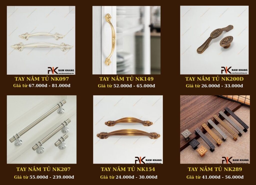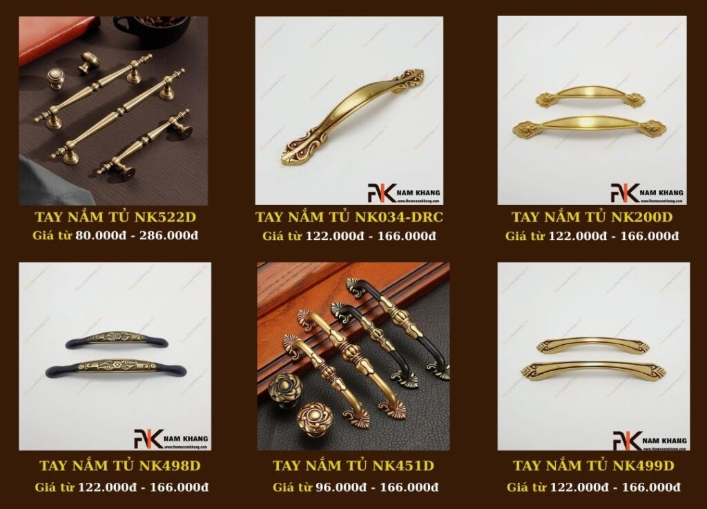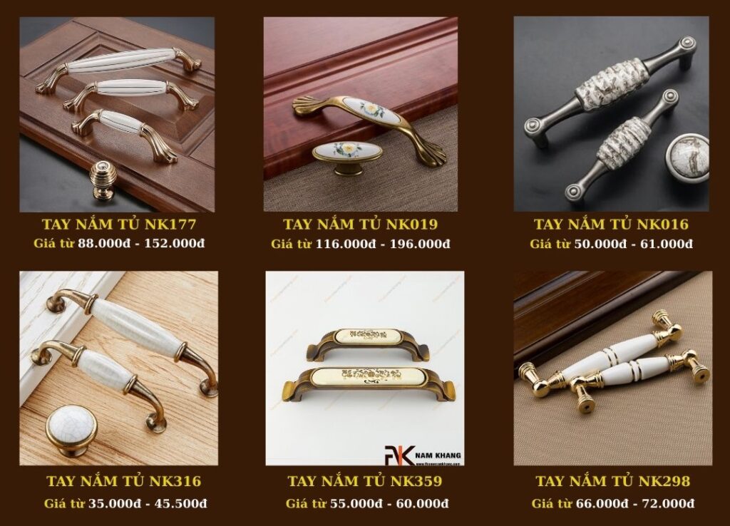 Giá của dòng tay nắm bằng đồng thường cao hơn, tùy thuộc vào độ tinh xảo và khối lượng đồng. Mức giá này phản ánh chất liệu cao cấp và giá trị thẩm mỹ vượt trội, là khoản đầu tư xứng đáng cho vẻ đẹp bền vững.