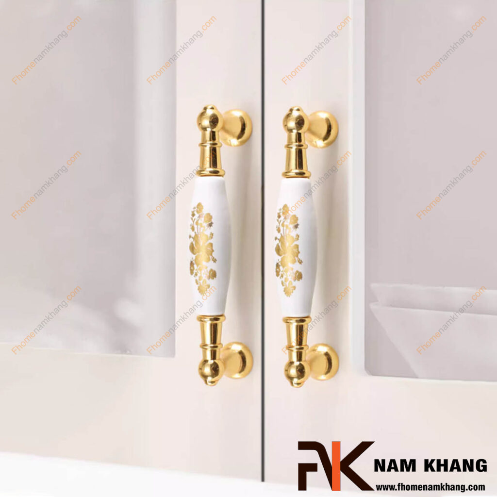 Sự kết hợp giữa chất liệu kim loại cao cấp và sứ tinh tế mang đến vẻ đẹp độc đáo, đầy tính nghệ thuật. Phần thân tay nắm bằng sứ thường có màu sắc nhẹ nhàng như trắng ngà hay các họa tiết hoa văn vẽ tay tinh tế, tạo cảm giác mềm mại, lãng mạn.