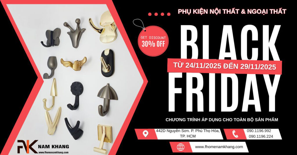 Và đây là tin tức khẩn cấp: Chương trình Black Friday của Nam Khang, nơi bạn có thể tìm thấy các bộ phụ kiện đồng bộ từ khóa cửa, tay nắm tủ đến bản lề với chất lượng vượt trội, chỉ còn hiệu lực trong 3 ngày cuối.