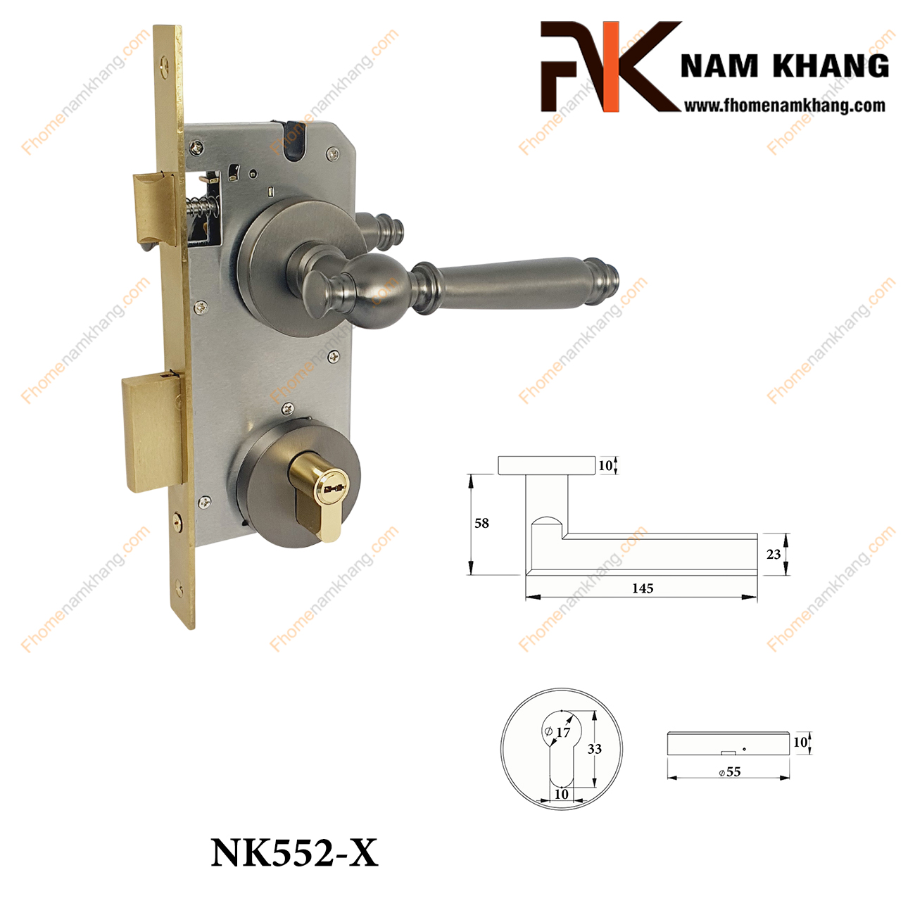 Thông số kỹ thuật Khóa cửa phân thể bằng đồng NK552-X