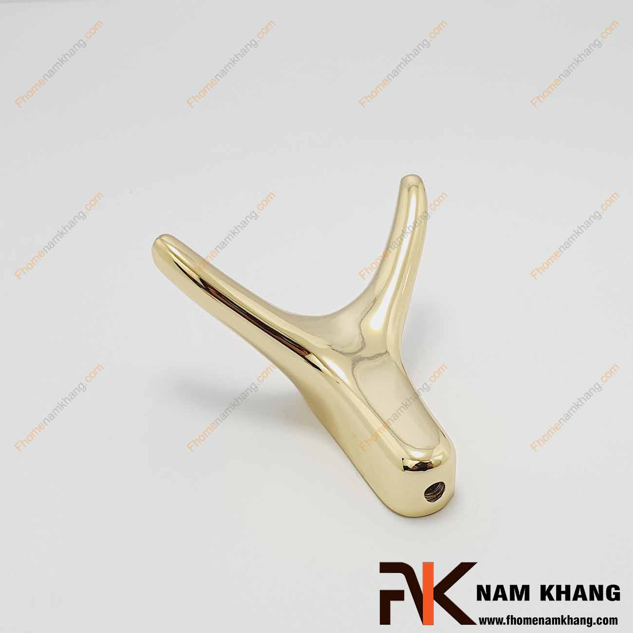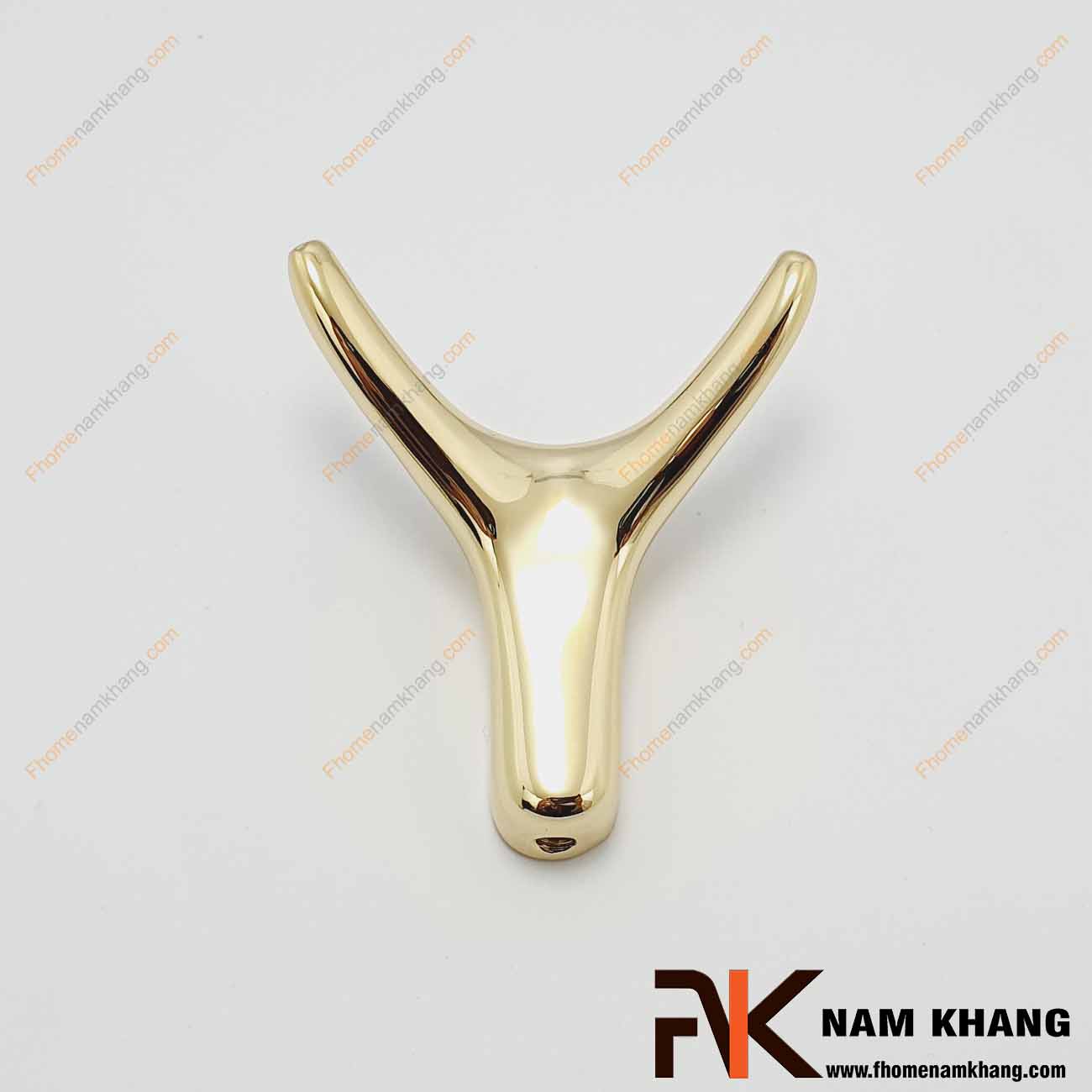 Móc treo gắn tường cao cấp NK124DT-V có khuôn dạng theo kiểu đầu hươu với 2 móc ngược lên trên. Đây là dòng móc treo mạ màu vàng bóng cao cấp lắp đặt bằng lỗ vít khoan âm trên tường Dòng sản phẩm Móc treo gắn tường này còn có thể sử dụng với công dụng trang trí làm nổi bật thêm không gian nội ngoại thất.