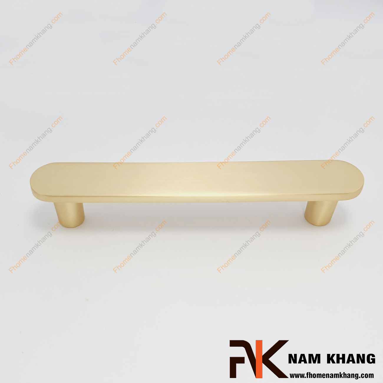 Tay nắm tủ dạng thanh NK455T-VM, thiết kế dạng tay nắm được bo tròn màu vàng mờ. Sản phẩm tay nắm tủ theo phong cách đơn giản này thường có 2 size 96mm và 128mm tính theo tâm lỗ và có thể phối hợp với rất nhiều các dạng núm cửa tủ khác đổ có một bộ sản phẩm đồng bộ về màu sắc và phong cách. Khi lắp đặt NK455T lên các dạng tủ kệ, độ an toàn của sản phẩm được đặt mức cao với các vít được khoan âm vào bên trong và các đường nét góc cạnh cũng được bo tròn tránh khả năng gây tổn thương khi va chạm.
