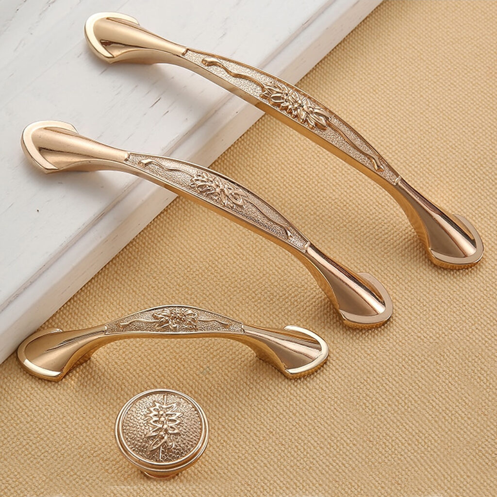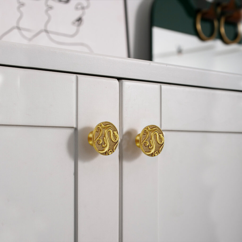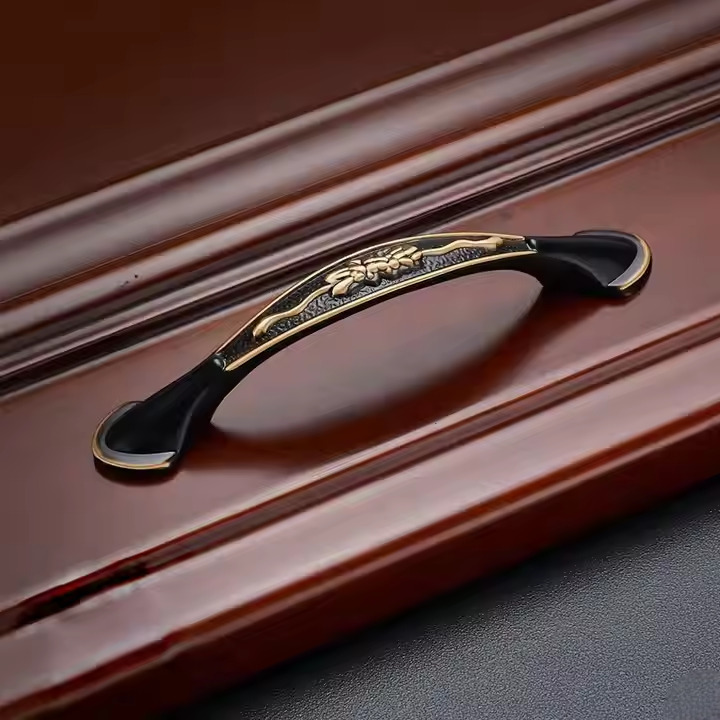 Tay nắm cửa tủ đồng hoa văn cổ điển NK037D