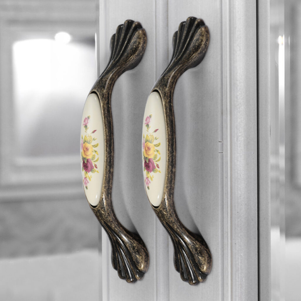Tay nắm tủ bếp phối sứ hoa cổ điển NK361